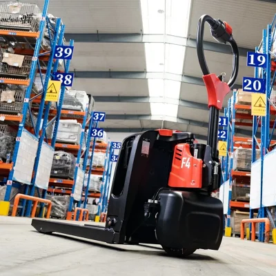 F4, DC sürüş kontrolü ve elektromanyetik servis freni ile güvenli duruş ve yumuşak kalkış sağlar. 0.75 kW sürüş motoru ve 0.5 kW kaldırma motoru, 4.0/4.5 km/s (yüklü/yüksüz) yürüyüş hızlarına ulaşırken 0.017/0.020 m/s kaldırma ve 0.058/0.046 m/s indirme hızlarıyla kontrollü malzeme akışı sunar. 6%/16% eğim performansı rampalarda yeterli çekiş sağlar. 210×70 mm tahrik, 80×60 mm yük tekerleri ve 74×30 mm destek tekerleri poliüretan kaplamasıyla sessiz ve zemin dostudur. Toplam genişlik 590 veya 695 mm, standart çatal ölçüsü 55×150×1150 mm’dir; çatal açıklığı 560/685 mm seçenekleri ile farklı palet tiplerini destekler. Tiller yüksekliği 750–1190 mm aralığındadır. 1360 mm dönüş yarıçapı ve 2025–2160 mm koridor genişliği değerleri dar alanlarda yön değiştirmeyi kolaylaştırır. 24V/20Ah Li‑Ion modül (opsiyonel ikinci modülle 2×24V/20Ah) hızlı değişim ve fırsat şarjı ile vardiya devamlılığı sağlar; modül başına yaklaşık 5 kg ağırlık ergonomiyi korur. Enerji tüketimi 0.18 kWh/h seviyesinde ölçülmüştür ve VDI 2198’e göre 60 t/h iş çevrimi ile 333.33 t/kWh verimlilik sunar.